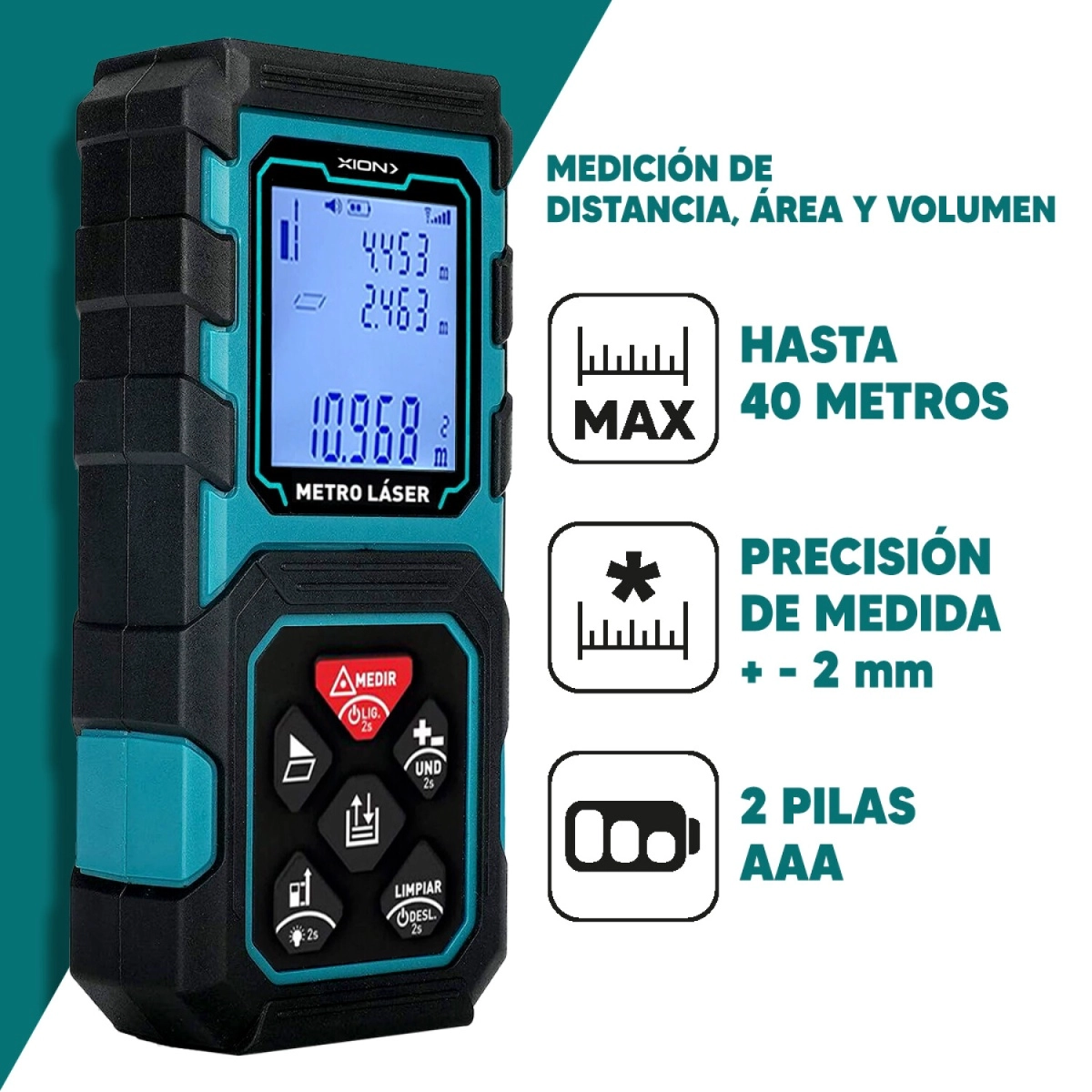 medidor de distancia láser xion, distanciómetro láser xion, medidor digital xion, medidor láser portátil, medidor de superficies xion, medidor de volúmenes láser, medidor de distancia profesional, medidor láser uruguay