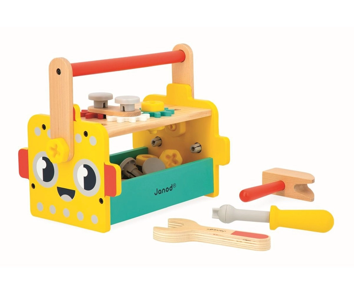 caja de herramientas janod, robot brico kids janod, juego de construcción infantil, set herramientas madera niños, caja de herramientas robot janod, juego educativo brico kids, janod uruguay juguetes, herramientas didácticas niños