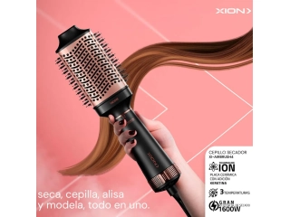 Secado y peinado en un solo paso. El Kit Xion XI-Beauty incluye cepillo secador rotativo con múltiples accesorios para alisar, dar volumen o modelar. Liviano, práctico y con tecnología iónica para un acabado suave y brillante.