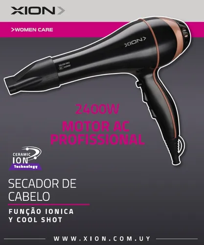 Cuidá tu cabello mientras lo secás. El Secador de Pelo Xion Tourmaline combina potencia y tecnología iónica para un secado rápido, sin frizz y con brillo natural. Ideal para uso diario o profesional.