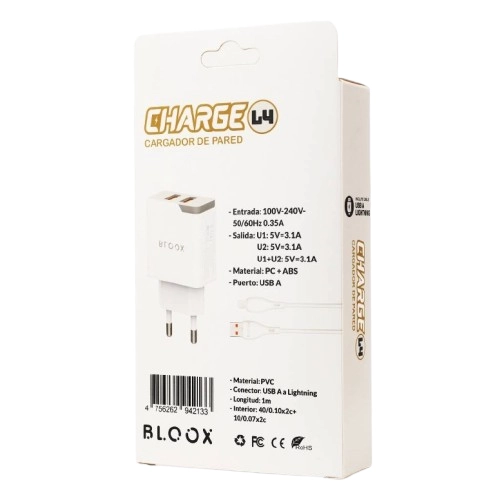 CARGADOR DE PARED 2 USB 3.1A CABLE LIGHTNING (BL-TCA-L4)