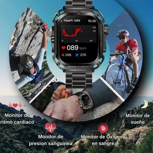 La malla del reloj está disponible en acero inoxidable, cuero y goma, lo que permite elegir el estilo que mejor se adapte a tu personalidad. Con compatibilidad en inglés, español y francés, este smartwatch se adapta a diversas necesidades lingüísticas. Su GPS y conectividad Bluetooth aseguran que estés siempre conectado y orientado, sin importar dónde te encuentres.