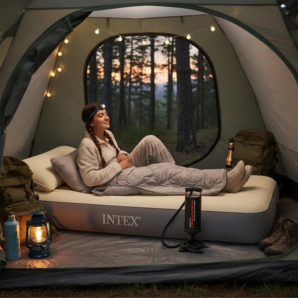 – Colchón inflable Intex con tecnología Fiber-Tech.
