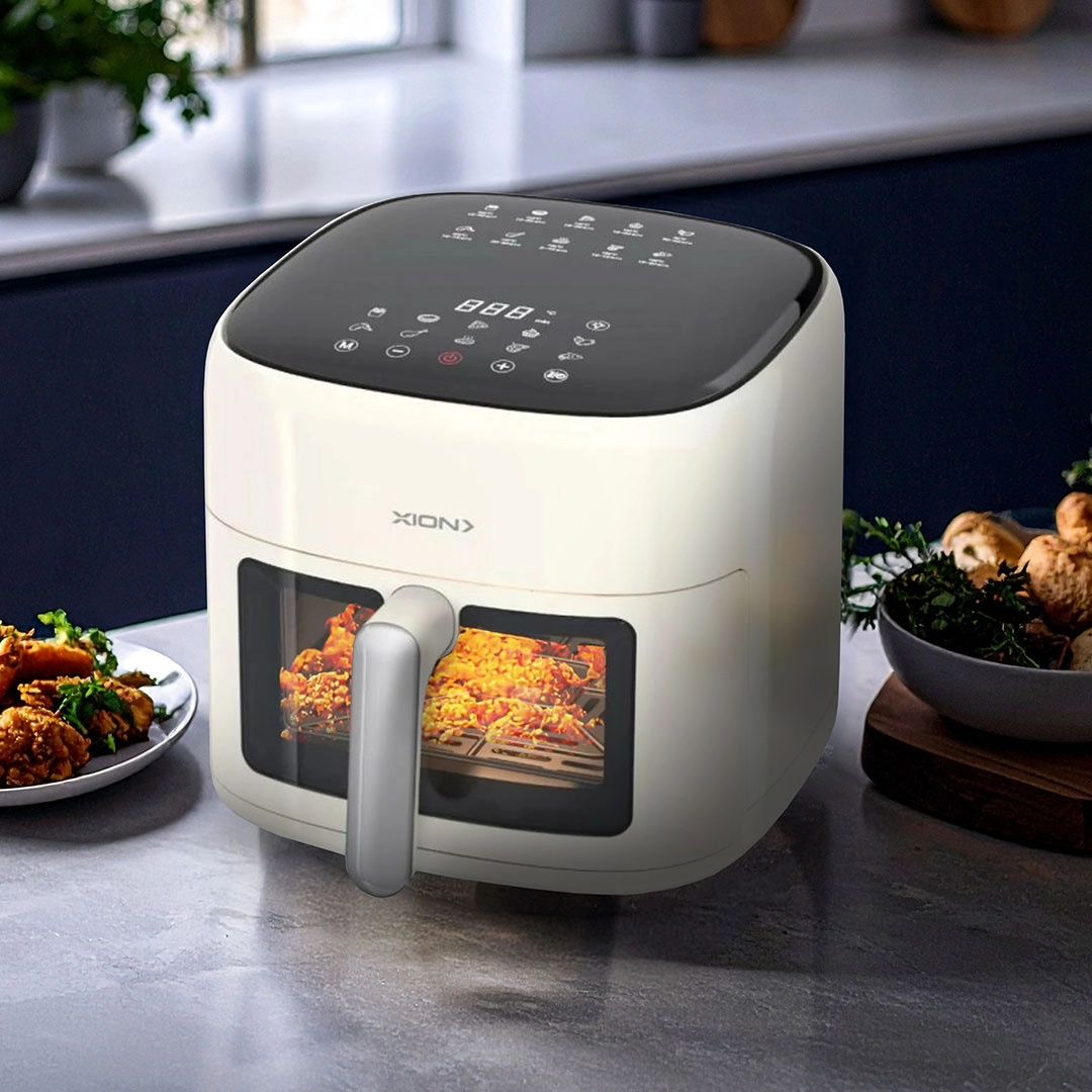 Más capacidad, más sabor, sin aceite. La airfryer Xion con doble canasto es ideal para familias. Cociná dos comidas al mismo tiempo, de forma saludable y práctica. ¡Perfecta para todos los días!