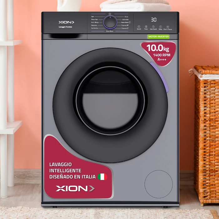 lavarropas xion, lavarropas 10kg xion, lavarropas inverter xion, lavarropas carga frontal, lavarropas plateado xion, lavarropas eficiente xion, lavarropas xion uruguay, lavarropas frontal inverter