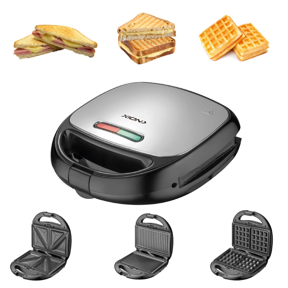 Simple, rápida y deliciosa. La sandwichera eléctrica Xion para 2 panes es ideal para preparar sándwiches crocantes en minutos. Diseño compacto, placas antiadherentes y fácil limpieza. ¡Perfecta para el desayuno o la merienda!