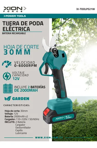 tijera de poda eléctrica xion, tijera recargable poda xion, tijera de podar con batería, tijera eléctrica 2 baterías xion, tijera de poda inalámbrica xion, tijera de jardinería eléctrica, tijera xion uruguay, herramienta de poda recargable
