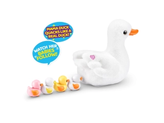 Con 4 huevos para abrir, podrás descubrir cuántos patitos encontrarás. Mamá Pato camina y grazna como un pato real, mientras los patitos la siguen. Además, podrás escuchar más de 10 sonidos adorables, incluyendo "cuac, cuac". Los patitos se acoplan a la cola de Mamá Pato y la siguen cuando camina. ¿Serás afortunado y encontraras el raro patito dorado? ¡Es una experiencia llena de sorpresas!