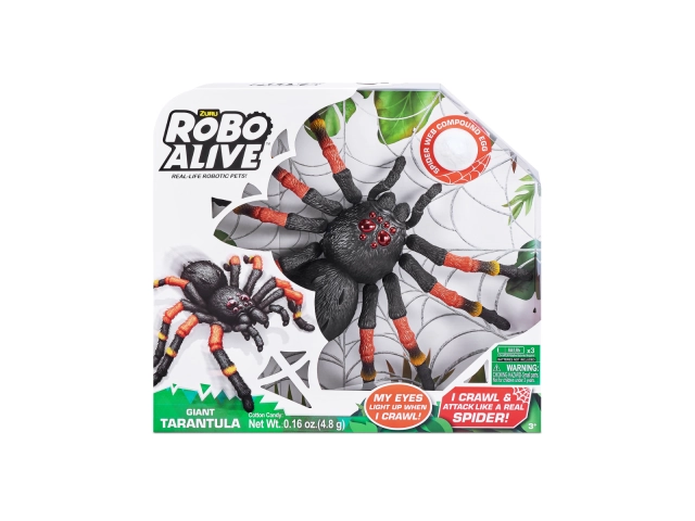 La tecnología de movimiento inteligente de Robo Alive da vida a los movimientos de esta tarántula, haciendo que se desplace de manera realista en busca de su presa.