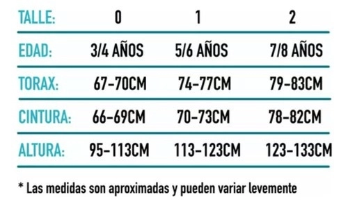Torax:67-70 cm Cintura:66-69cm Altura:95-113 cm