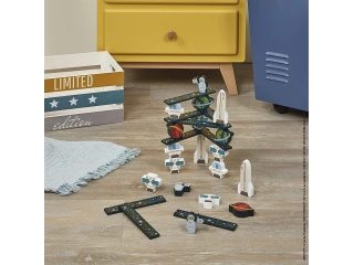 Hay que apilar los 5 astronautas, 5 satélites, 4 cohetes, 5 planetas, 5 ovnis y 12 tablillas de galaxia para desafiar a la gravedad.