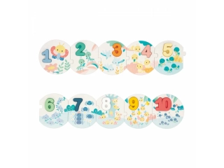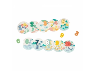 Una vez hecho este bonito puzzle de 10 piezas de colores pastel, habrá que poner cada cifra en su sitio. Está el orden cronológico, claro, pero los niños también podrán contar con la ayuda de los animales de cada pieza. Tres libélulas, ocho mariquitas? ¡y salen las cuentas! Incluye un modelo de ejemplo para ayudar a los más pequeñitos las primeras veces que juegan.