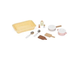 Equipada como la de verdad y con 11 accesorios: 2 tablas de cortar, 1 sartén, 1 cacerola, 1 espumadera, 1 cucharón, 1 salero y pimentero, 1 especiero, 1 cesta grande, 1 ventana decorativa.