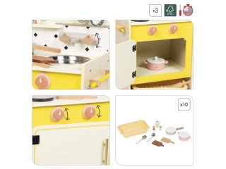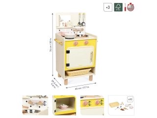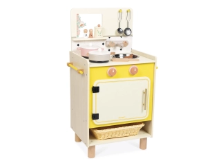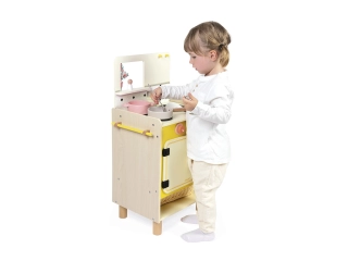 Con su cocina de madera, los niños a partir de 3 años podrán soñar locas recetas en la cocina e imitar a los mayores.