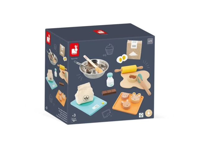 taller de pastelería janod, mi taller janod, juego de imitación infantil, pastelería de juguete janod, set de repostería madera niños, juguete simbólico janod, janod uruguay juguetes, cocina de juguete janod