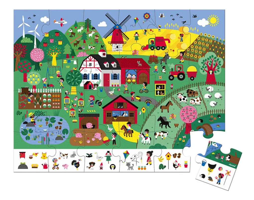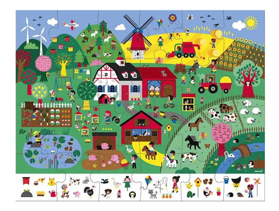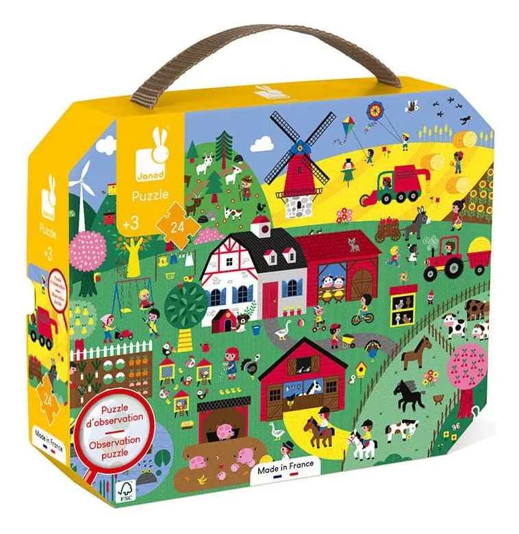 puzzle observación janod, puzzle granja janod 24 piezas, rompecabezas infantil janod, puzzle educativo granja, puzzle de observación niños, puzzle janod uruguay, puzzle granja infantil, rompecabezas de animales granja