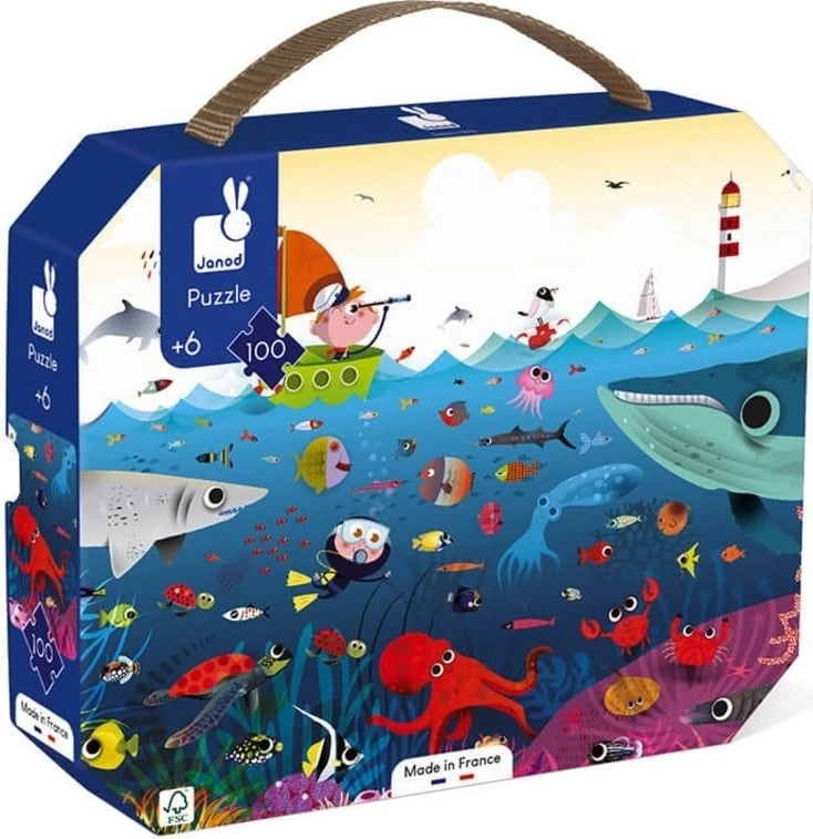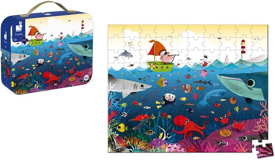 puzzle janod debajo del agua, puzzle maletín janod 100 piezas, puzzle submarino infantil, rompecabezas janod agua, puzzle niños 100 pcs janod, puzzle educativo janod, puzzle marino infantil, puzzle janod uruguay