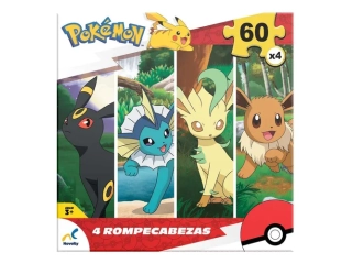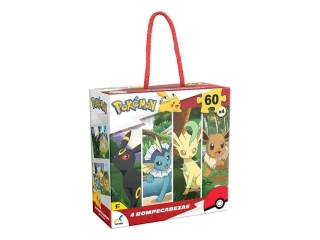 Diversión con cuatro aventuras de rompecabezas en un solo empaque. Disfruta de cuatro rompecabezas de 60 piezas.Ayuda a mejorar la concentración, resolución de problemas y la coordinación motriz en los niños. Fabricado con cartón de alta calidad, resistente al desgaste y adecuado para uso prolongado. El empaque con asa tipo cordón lo hace fácil de transportar, perfecto para llevar a cualquier lugar.Garantizamos la autenticidad del producto al contar con la licencia oficial de Pokémon, lo que asegura la calidad y originalidad.Este set es perfecto para todas las edades y fomenta la concentración y el trabajo en equipo.