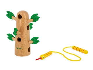 ¡Ven y ayúdala a subir a lo alto de este árbol de madera a través de los diferentes agujeros! Este juego de cordones infantil es adecuado para niños de a partir de 18 meses.