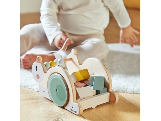 Con este juguete de estímulo 2 en 1, el bebé empieza a andar y descubre los bloques a partir de 18 meses.