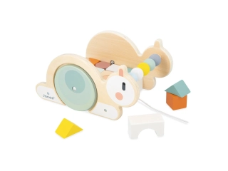 Este juguete de arrastre tiene además un bonito ábaco con 5 cuentas de madera en la parte delantera.