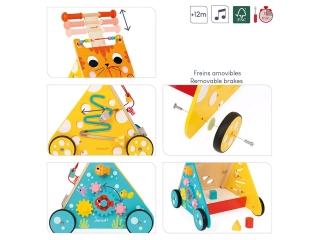 carrito multiactividades janod, carrito el gato janod, andador de madera janod, juguete multiactividades infantil, carrito educativo janod, juguete de motricidad fina janod, carrito primeros pasos niños, janod uruguay juguetes