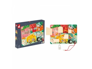 tablero de actividades janod, busy board janod, juego sensorial infantil janod, juguete educativo janod, tablero interactivo niños, juego motricidad fina janod, tablero didáctico janod, janod uruguay juguetes