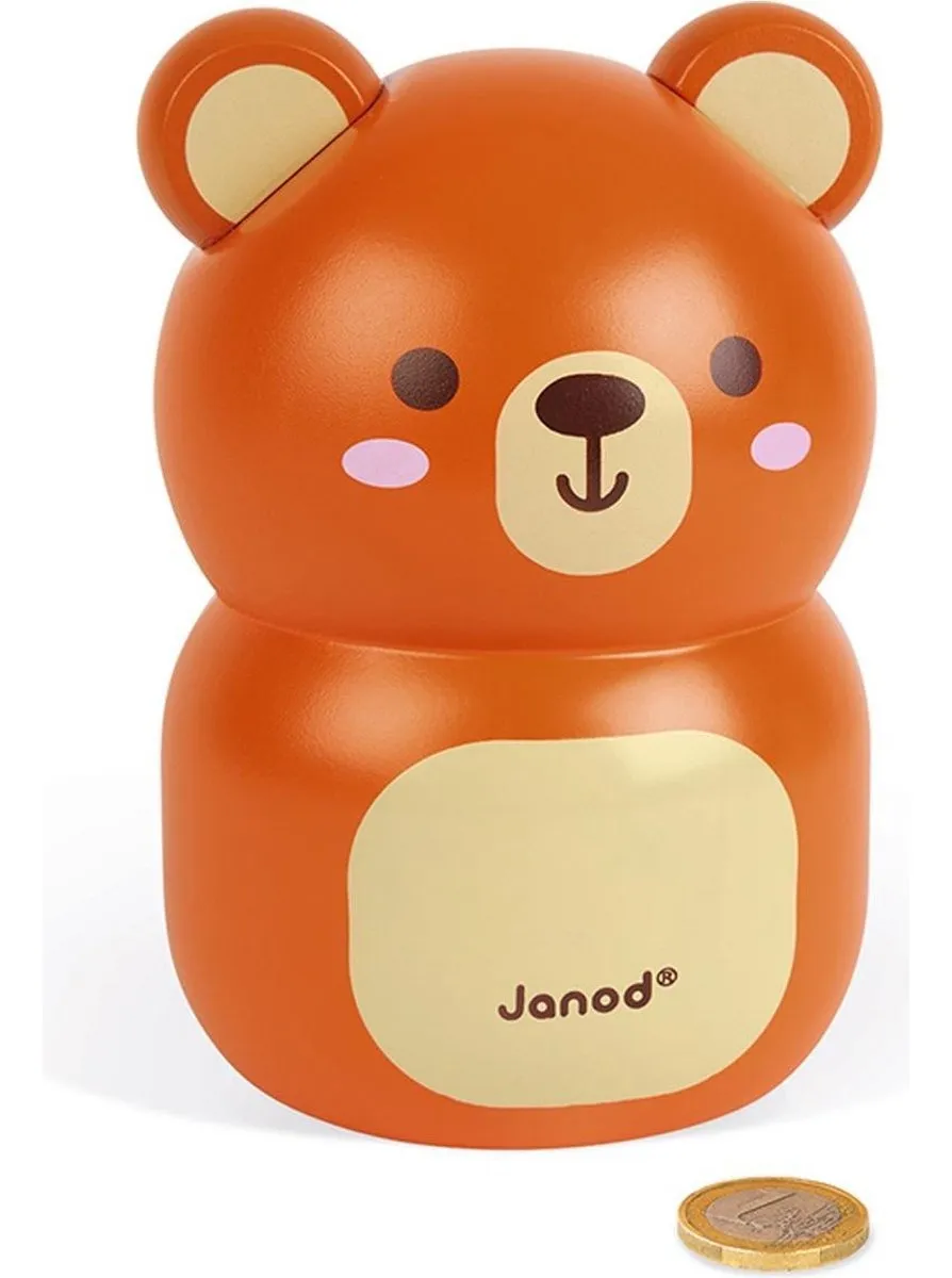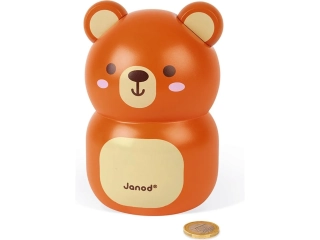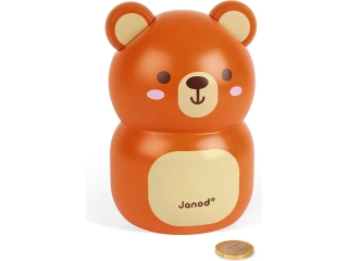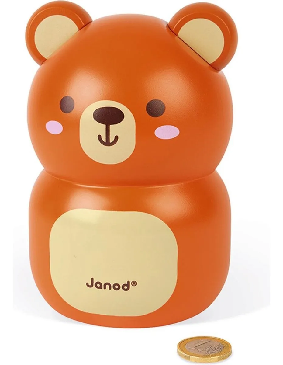alcancía osito janod, alcancía de madera janod, alcancía infantil janod, osito janod, juguete educativo janod, alcancía decorativa niños, alcancía janod uruguay, juguetes de madera janod