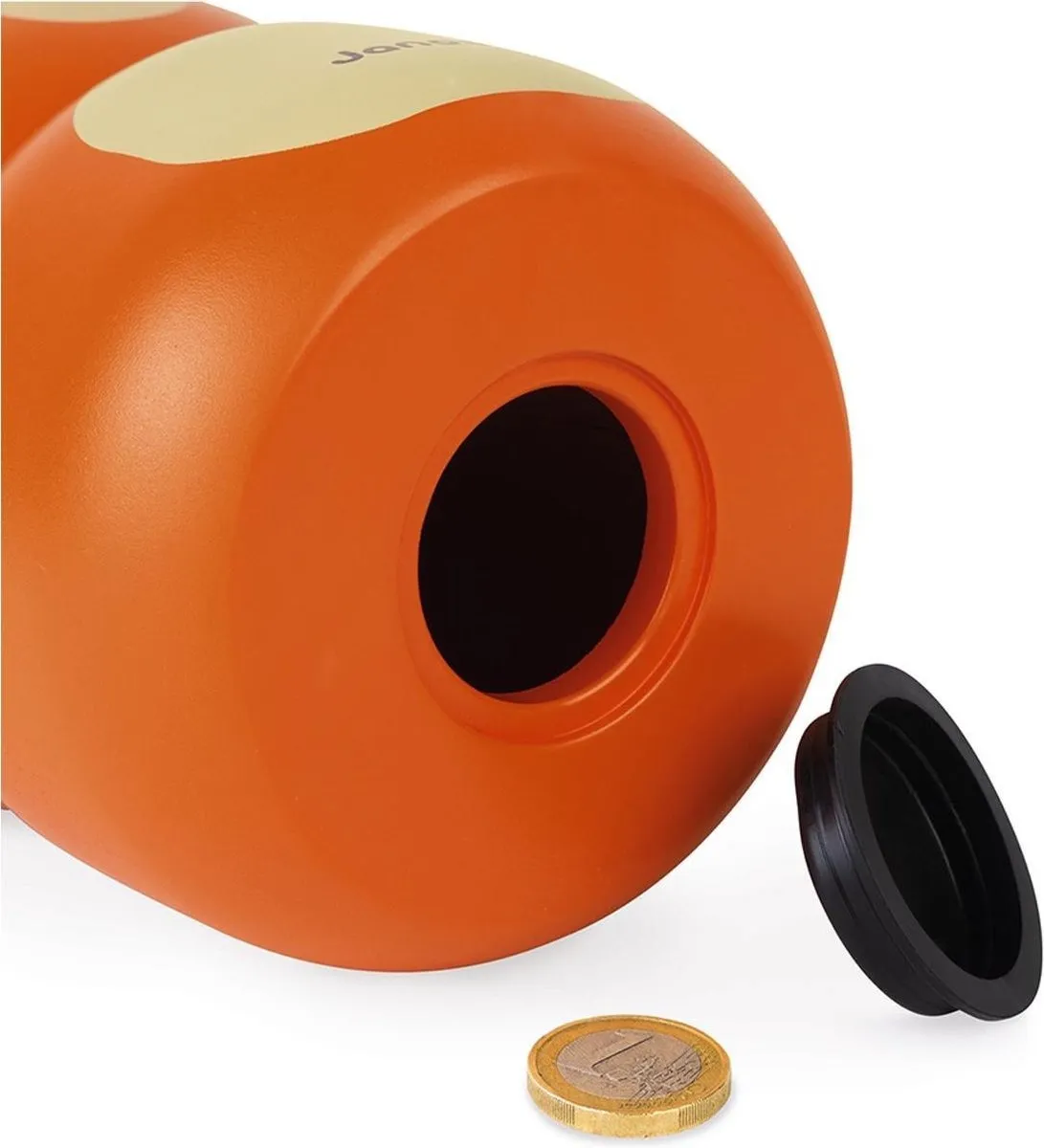 La alcancía Janod Bear está hecha de madera y es más grande de lo que parece, es sólida y resistente para soportar el peso de las monedas cuando está llena.