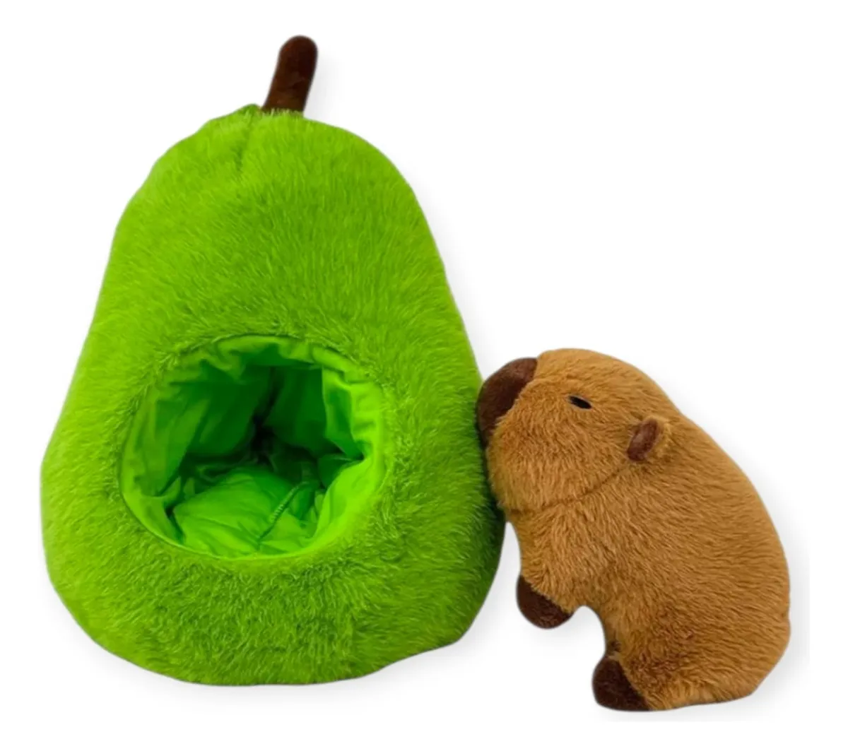 Este adorable peluche combina lo mejor de dos mundos: la ternura de un capibara, el roedor más tranquilo y sociable, con la frescura y originalidad de la palta. Hecho con materiales suaves y de alta calidad, es el compañero perfecto para abrazar, decorar o llevar en tu mochila. Con su diseño único y divertido, ¡este capibara te hará sonreír cada vez que lo veas!