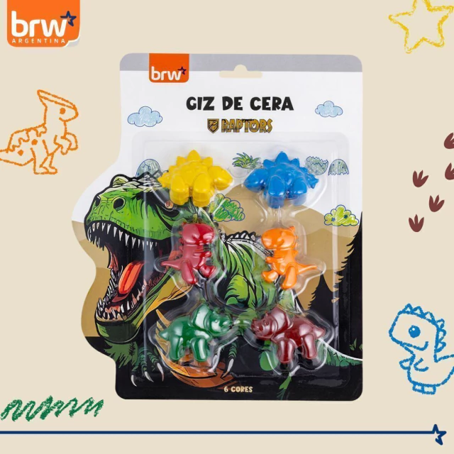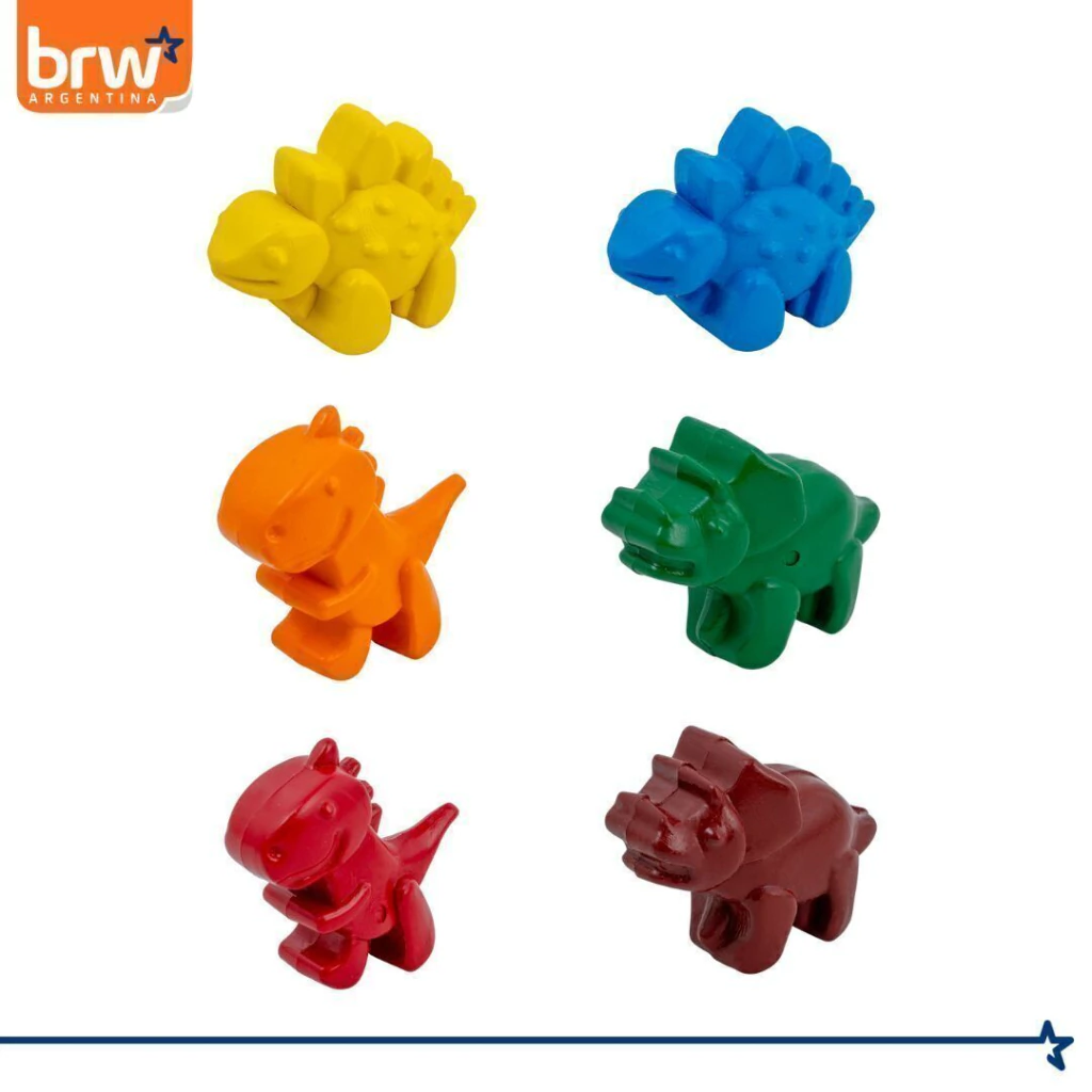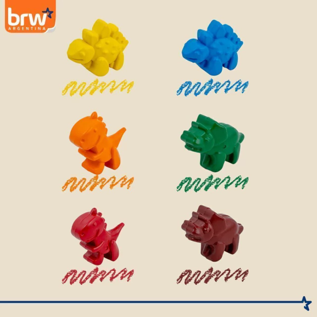 crayones brw dinosaurios, crayones de cera magic brw, crayones infantiles brw, crayones creativos forma dino, crayones brw x6, crayones escolares dinosaurios, crayones uruguay brw, crayones divertidos niños