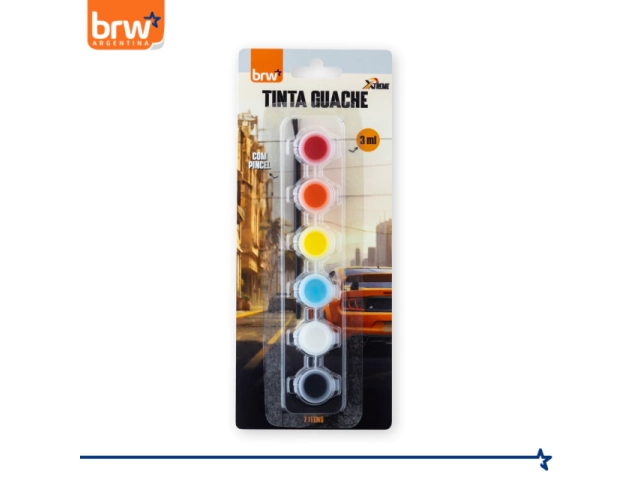 tempera brw xtreme, tempera brw x6 colores, set pintura infantil brw, temperas escolares brw, temperas con pincel brw, set artístico brw xtreme, temperas creativas niños, temperas brw uruguay