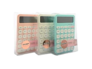 Calculadora de escritorio BIG DISPLAY de 12 dígitos. Memoria independiente, porcentaje y radicación. Teclas de retroceso, +/- y GT. Dimensiones: 105 x 28 x 158 mm. Disponible en tres colores: Blanco, Celeste Pastel, Rosado Pastel