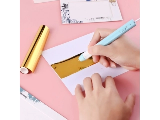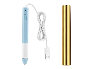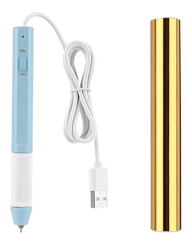 Mango delgado con agarre de goma resistente al calor para transferir letras, títulos, formas, trazos o dibujos rellenos de foil en papel, cartulina, cuero y otros materiales. Alimentación USB (PC, Cargador, Power Bank, etc).