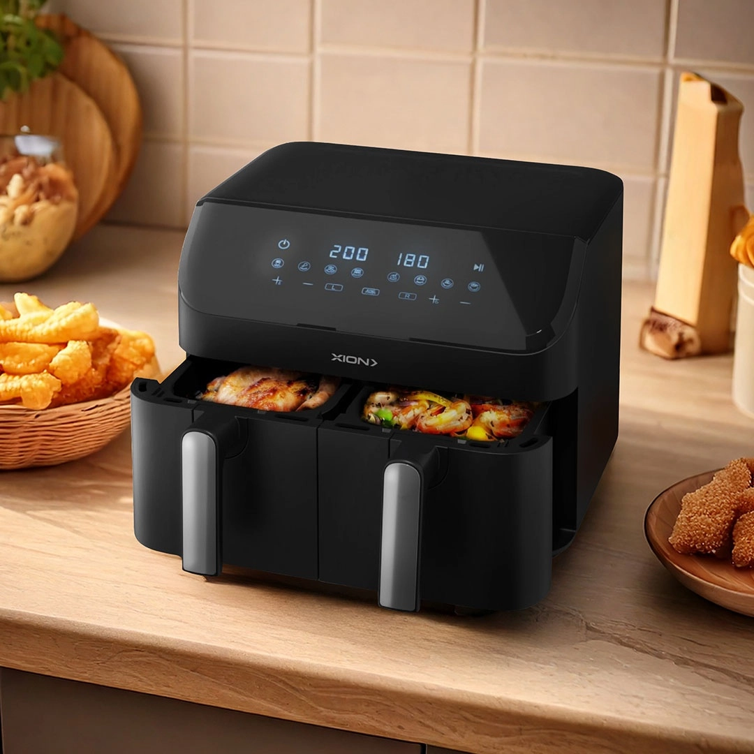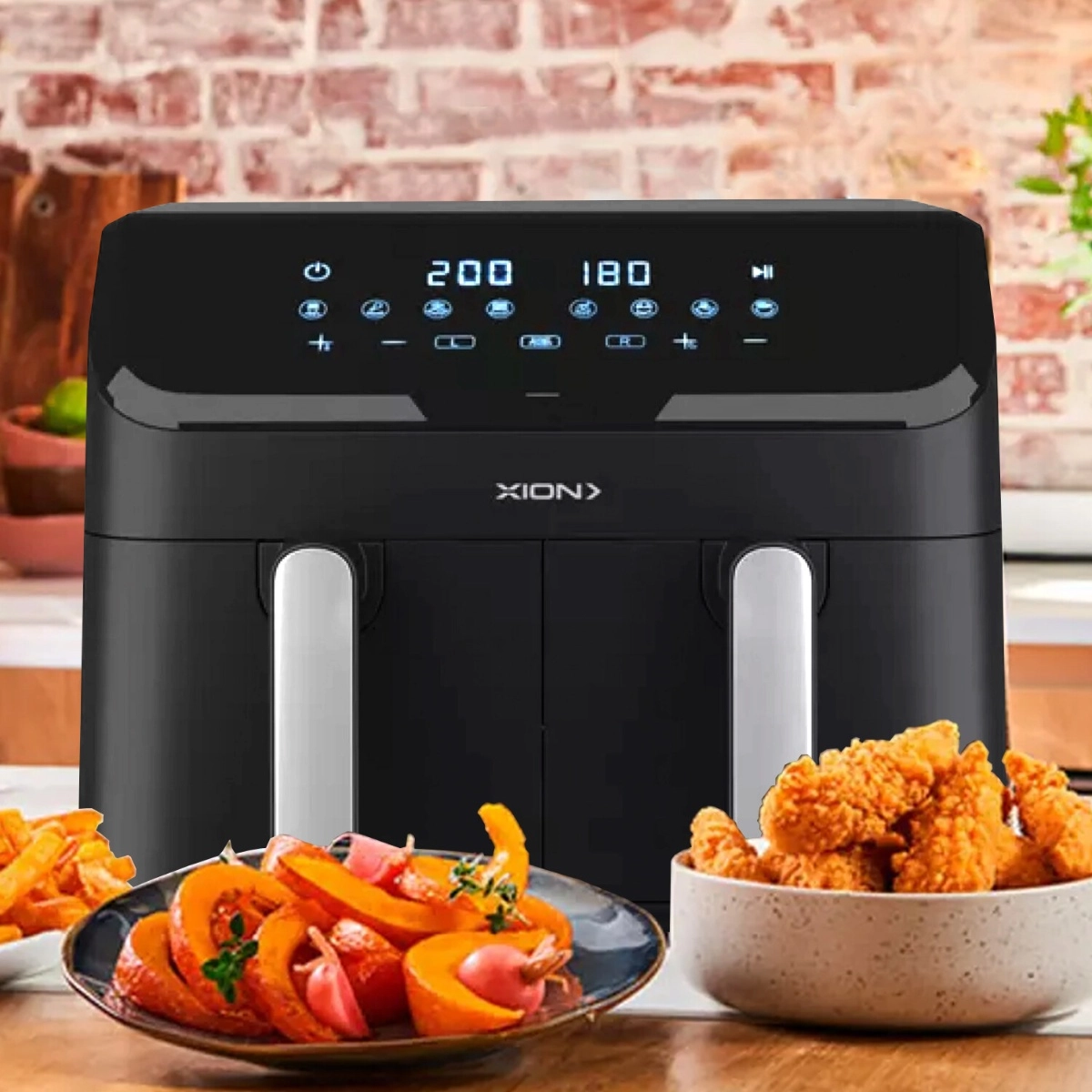 airfryer, freidora de aire, freidora sin aceite, airfryer doble canasto, freidora xion, cocina saludable, electrodoméstico de cocina, freidora familiar, cocinar sin aceite, freidora con dos compartimientos, freidora grande, airfryer en Uruguay