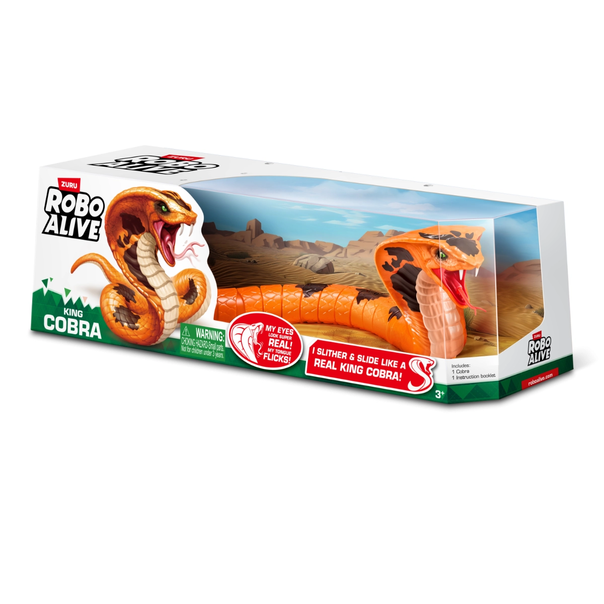 Tecnología de movimiento inteligente: la tecnología de movimiento inteligente Robo Alive le da a esta lengua King Cobra movimientos de movimiento realistas. Míralo deslizarse por el suelo hasta su presa y cruzar los dedos no eres tú!