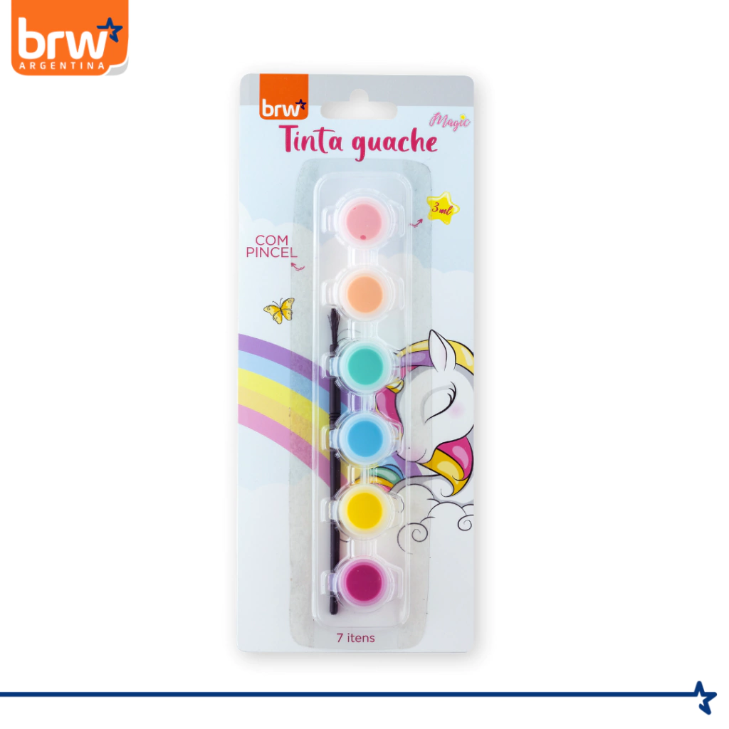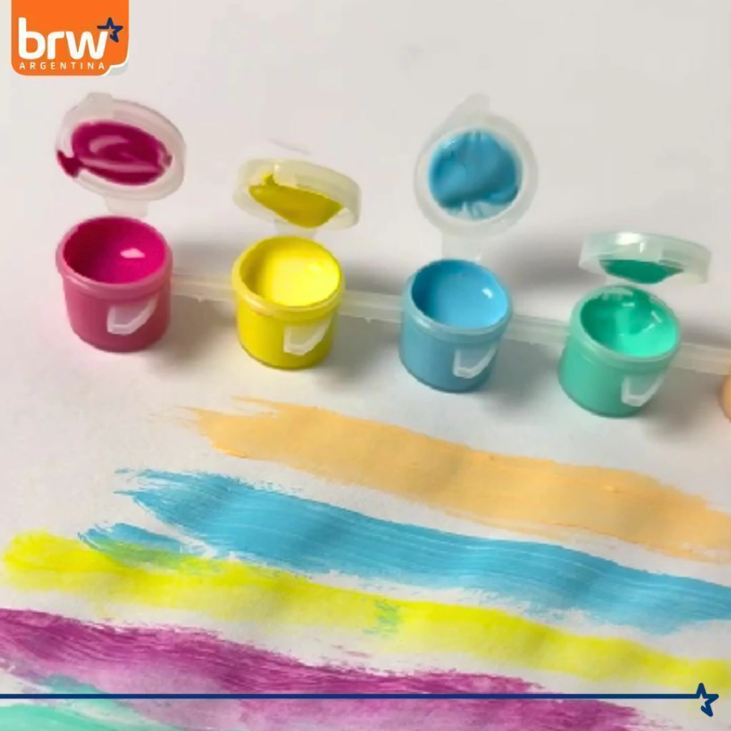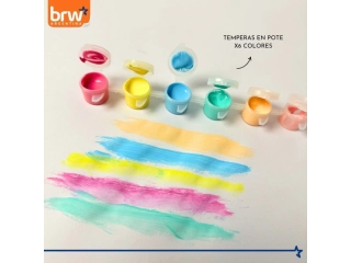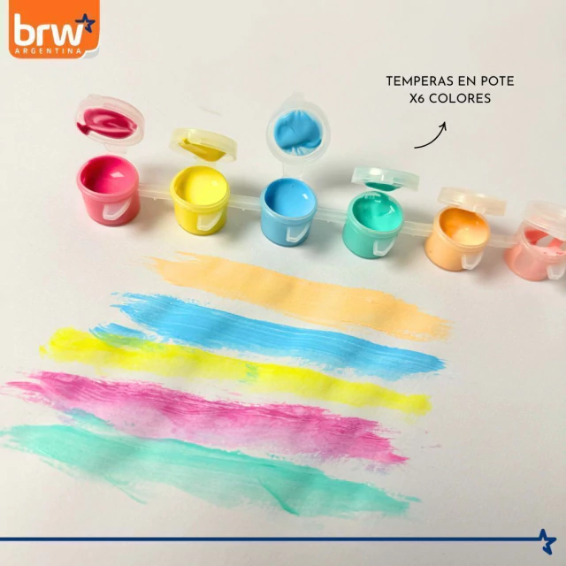 tempera brw magic, tempera brw x6 colores, set de pintura infantil brw, temperas escolares brw, temperas con pincel brw, set artístico brw magic, temperas creativas niños, temperas brw uruguay