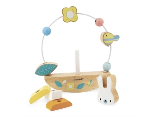 Este juguete de estímulo de madera 3 en 1 divertirá a los más pequeños curiosos gracias a las actividades ideales para la primera infancia: un conejo apilable en 4 partes para montar, un arco en bucle sobre el que el bebé podrá hacer viajar 6 elementos de madera y, finalmente, un divertido soporte basculante que animará el conjunto con delicadeza.