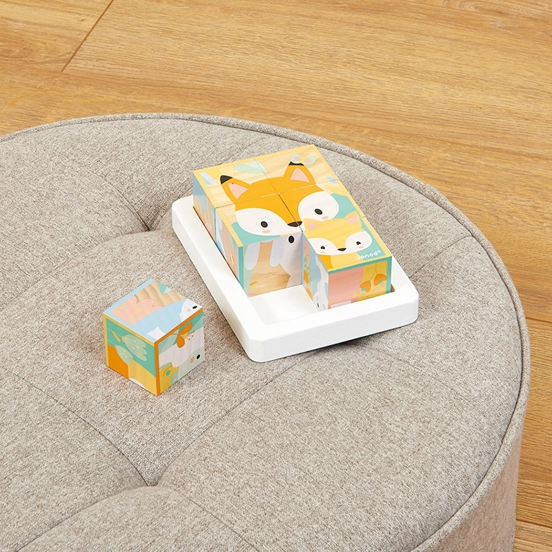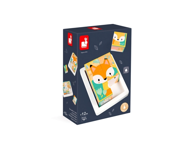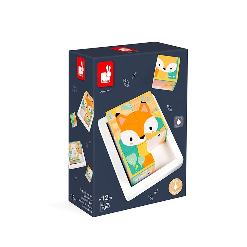 Este bonito juguete de primera infancia de la colección Pure permite al bebé hacer sus primeras manipulaciones y luego jugar a reconstruir las escenas de estos 6 cubos. Un oso, zorro, conejo, comadreja, ciervo y una escena en la que están todos juntos.