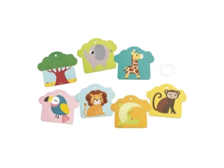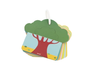 Este set contiene 6 tarjetas de animales con materiales para tocar, unidas por una anilla extraíble para mantener las tarjetas juntas y transportarlas fácilmente. Una tarjeta árbol con una abertura en la parte delantera también permite jugar al escondite con las tarjetas. Para poner en manos de niños a partir de 12 meses. Cada tarjeta mide 18 x 16,1 cm, un tamaño grande que permite a los bebés despiertos cogerlas fácilmente.