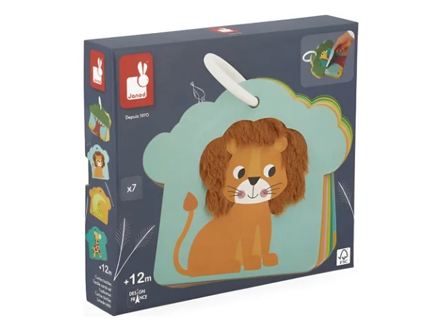cartas táctiles janod, cartas sabana janod, juego sensorial janod, cartas educativas niños, cartas animales janod, juego memoria táctil infantil, cartas janod uruguay, cartas didácticas janod