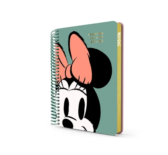 cuaderno mooving, minnie mouse, cuaderno 1/2 oficio, licencia disney, tapa dura, papelería creativa, cuaderno escolar, copymas, cuaderno minnie